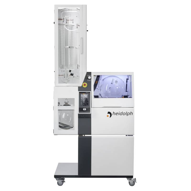 蒸發(fā)瓶和接收瓶受透明、防霧 PMMA 防護(hù)罩保護(hù),有效提高安全性。水/油兩用加熱鍋可用水或浴液,最高加熱溫度可達(dá) 180 °C。集成自動補(bǔ)液系統(tǒng)、溢流口及底部放液閥。EASY LOCK可實現(xiàn)單人更換蒸發(fā)瓶。
